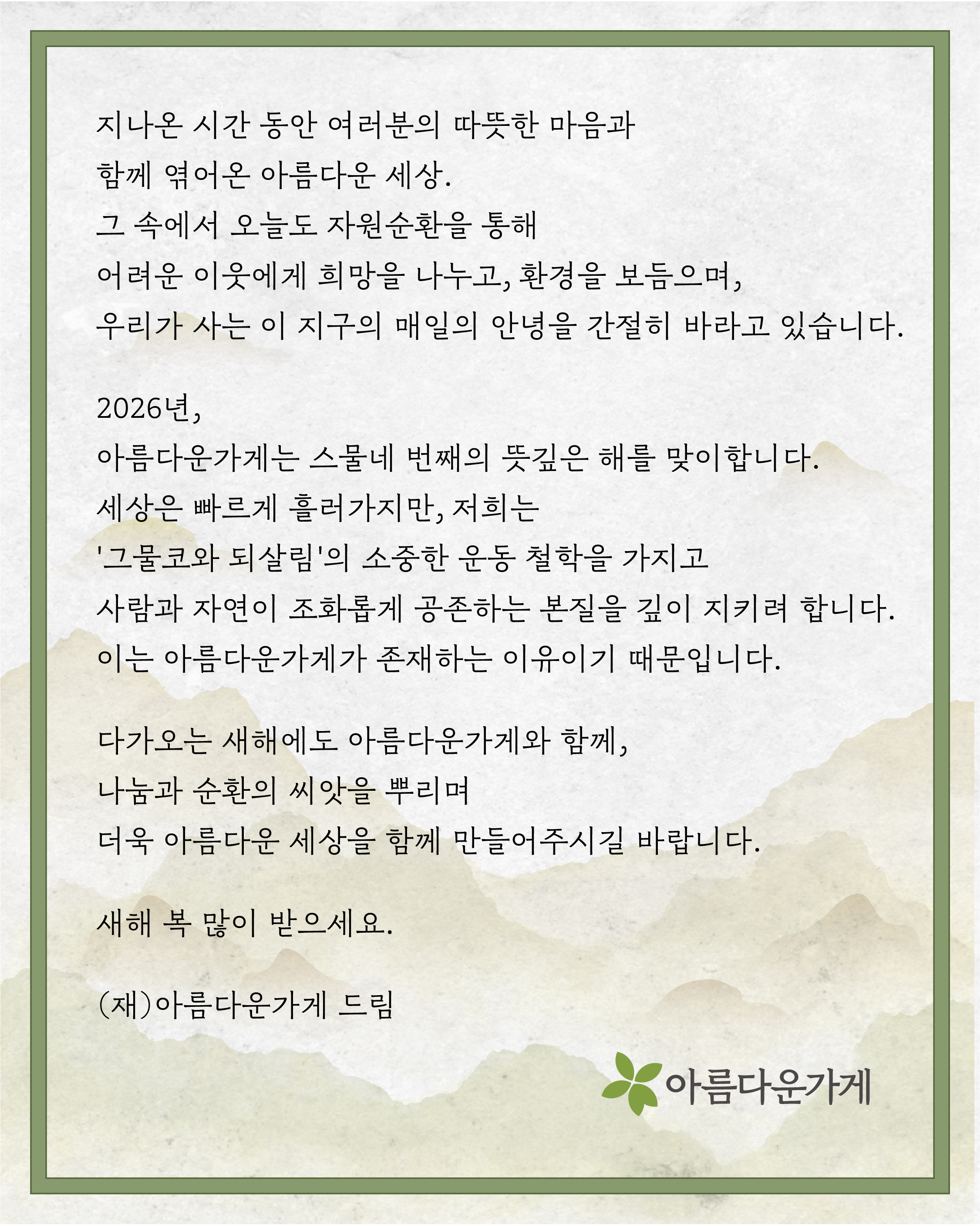 μ§ μμ μ 리νλ©° λΉμ΄ 물건λ€μ΄ μ΄μμκ²λ μμ€ν λ³΄λ¬Όμ΄ λκ³ , λμκ²λ μΈμ‘곡μ ννμΌλ‘ λμμ€λ κΈ°μ¨! 2026λ λΆν°λ κ·Έ κΈ°μ¨μ΄ λ μ»€μ§ μμ μ λλ€.